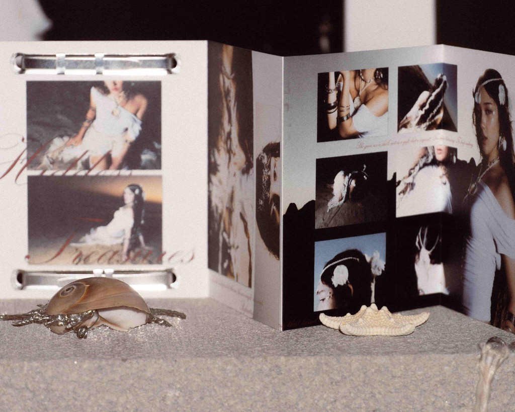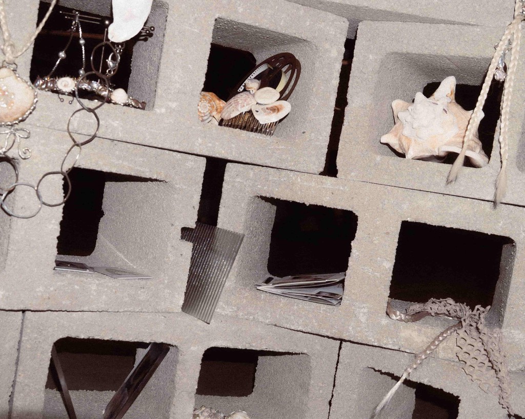 Hidden Treasures is a collaborative installation with Liane Calvo's jewelry brand @love. lili77, presenting a soft narrative where the ocean, sun, and sand take different forms. Visitors are invited to explore the arrangement by touch. Tucked between each cavity are delicate forms of adorned objects. This piece is meant to be a sensory experience, something to move through slowly, noticing the little things in between.